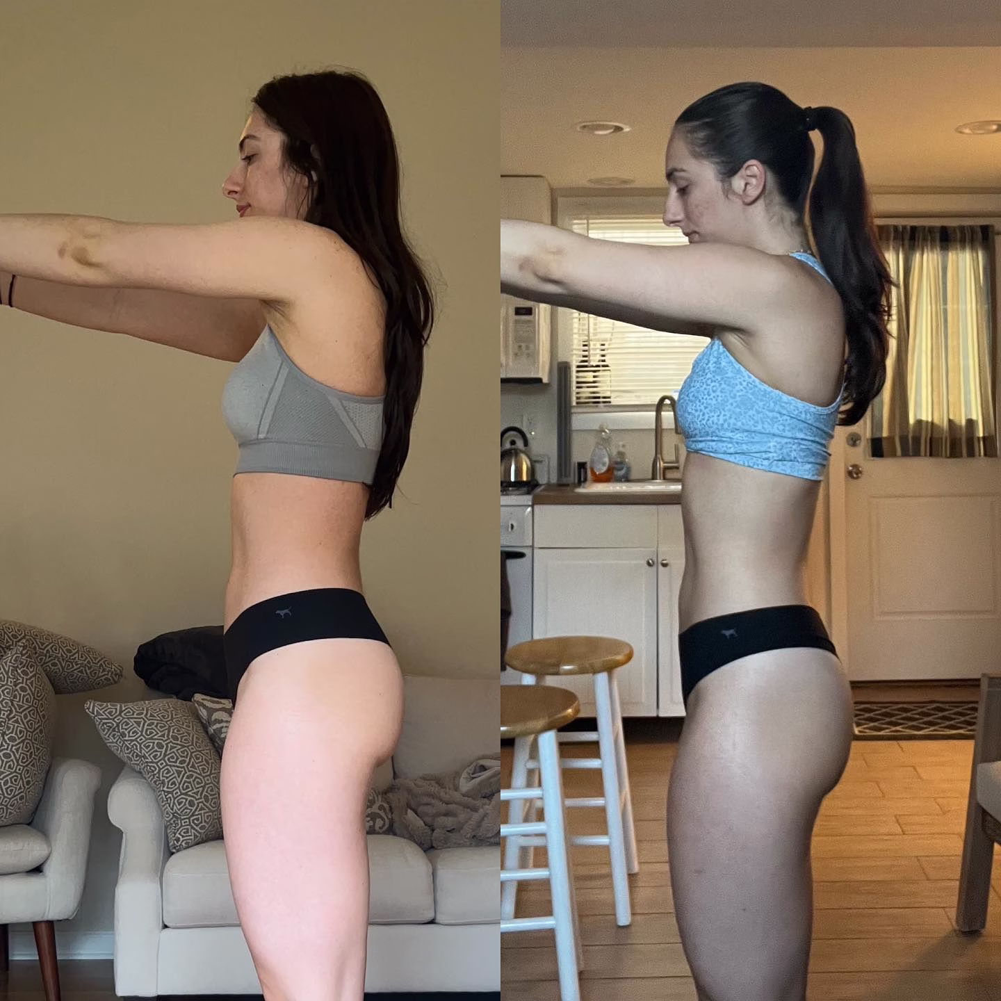 I feel great, I feel like I look great. For the first time in a long time, I feel like I don’t really care/fixate on it as much. Since we started working together, I have just been accepting more of myself and owning it, rather than stressing or making myself feel bad. Like if my stomach doesn’t look flat with washboard abs in a bikini, or if my bikini line is hairy, or whatever it may be, there are more things to be happy about and focus on that in the past, I haven’t taken the time to look for.